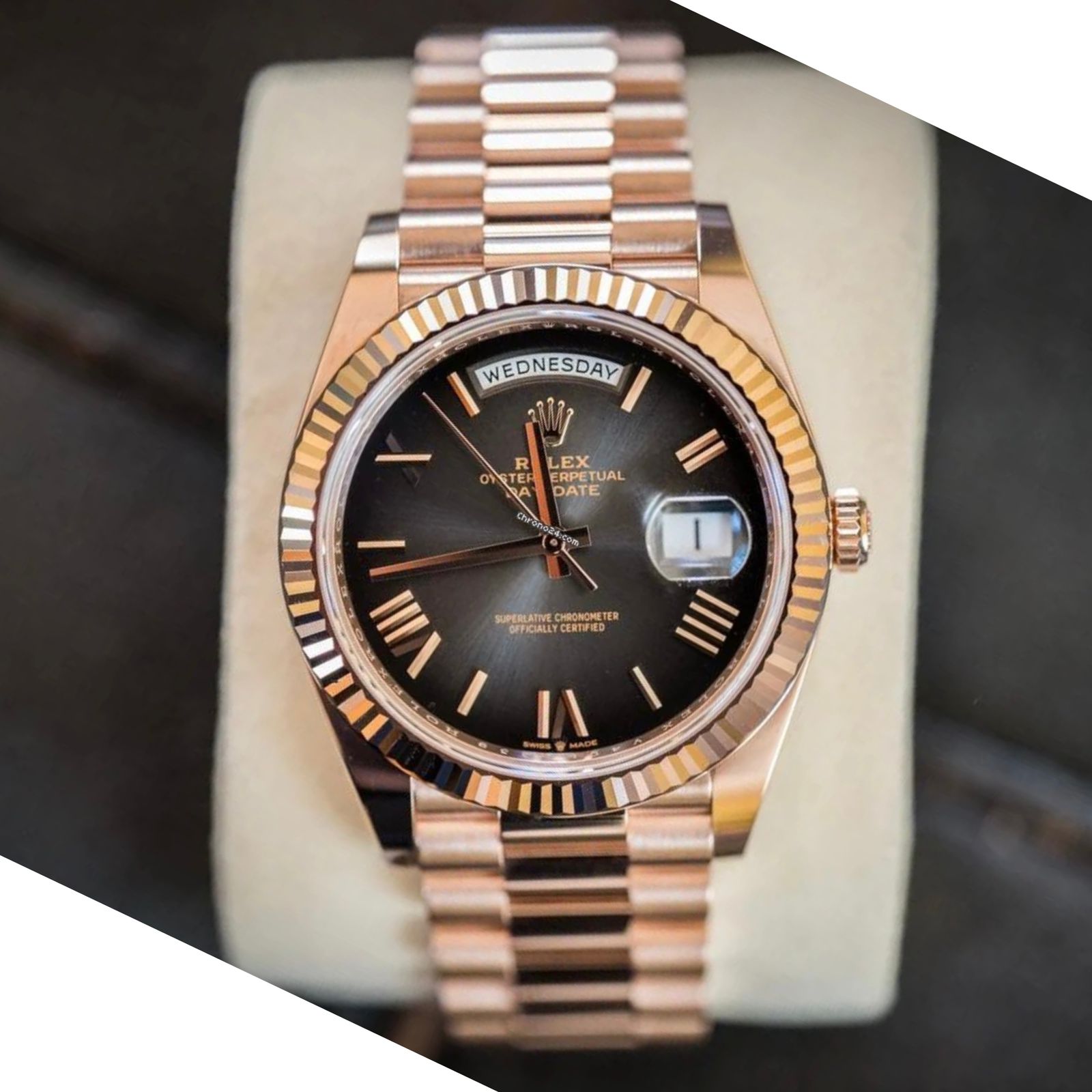 Introducing the Rollie Luxury Automatic Day-Date Watch — a refined timepiece that blends classic elegance with modern craftsmanship. Inspired by the iconic Day-Date design known for displaying both the day and the date, this watch features a sleek black dial with clear day and date windows, a bold fluted bezel finish, and a premium metal bracelet for everyday luxury.