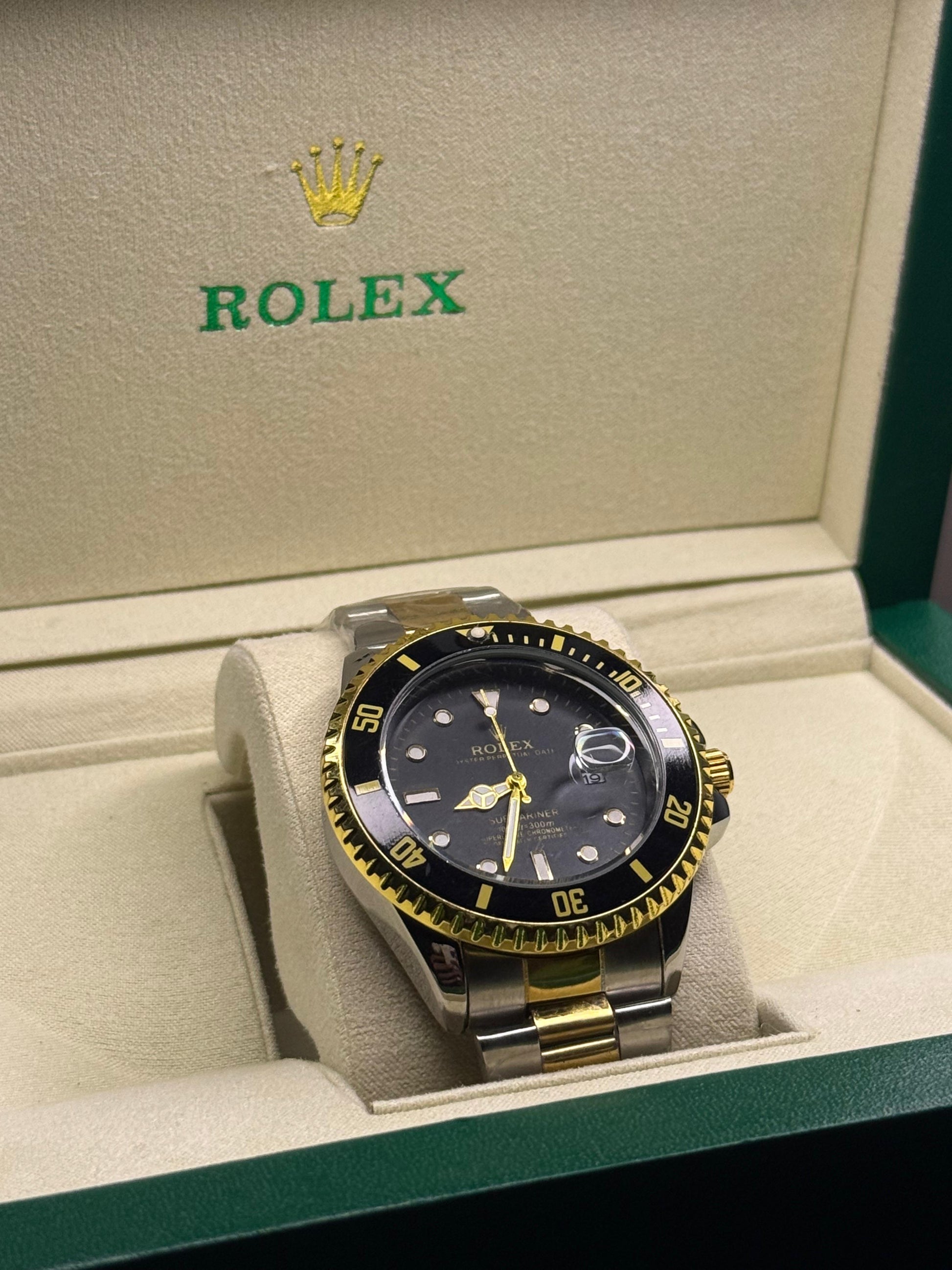 The Rollie Submariner Two Tone combines robust functionality with elegant design, featuring a durable stainless steel and gold bracelet complemented by a high-precision automatic movement. Its water-resistant construction ensures reliable performance underwater, making it suitable for both professional divers and watch enthusiasts. Designed with expert craftsmanship, this timepiece offers exceptional durability and timeless style, perfectly balancing luxury and practicality.